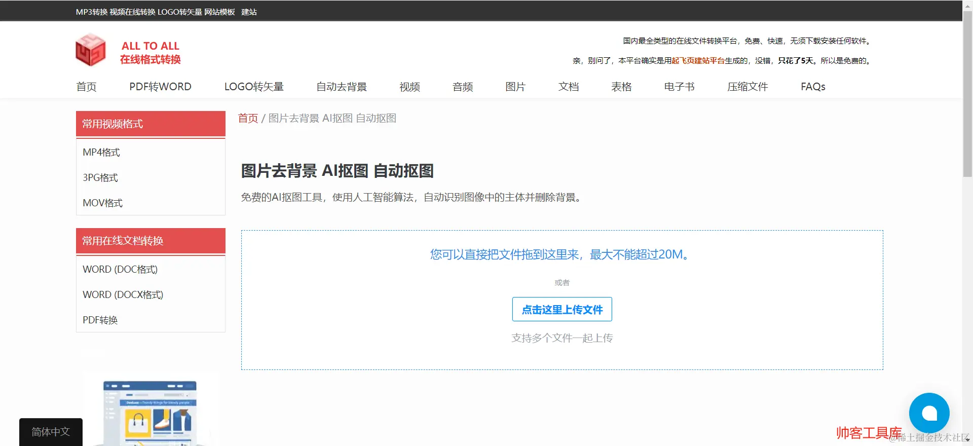 而且网站还附带其它功能,比如AI自动去除图片背景,都是免费的。
