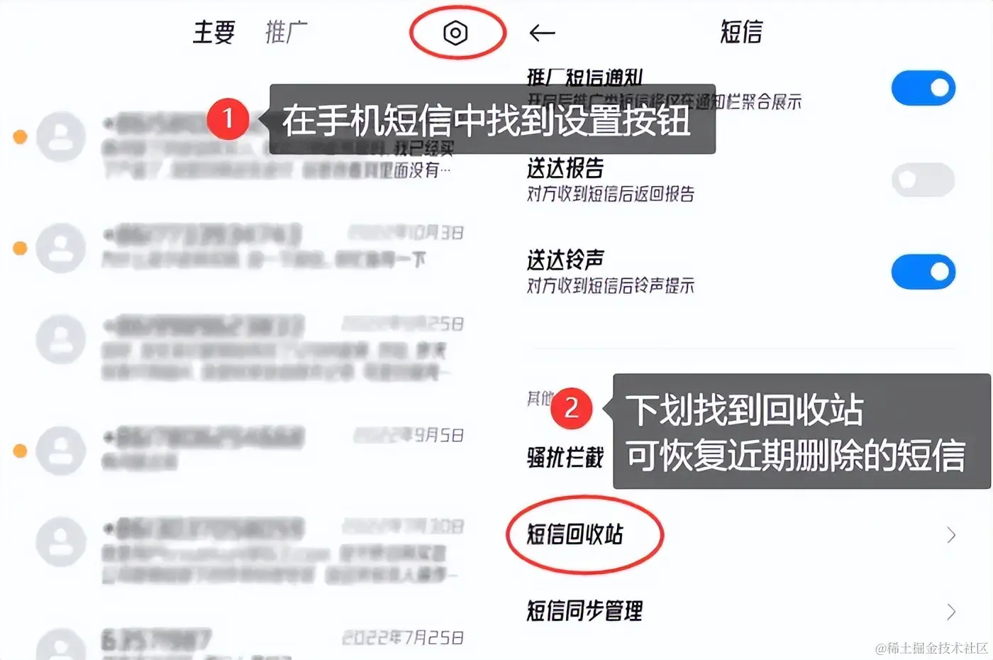 方法一:手机短信回收站