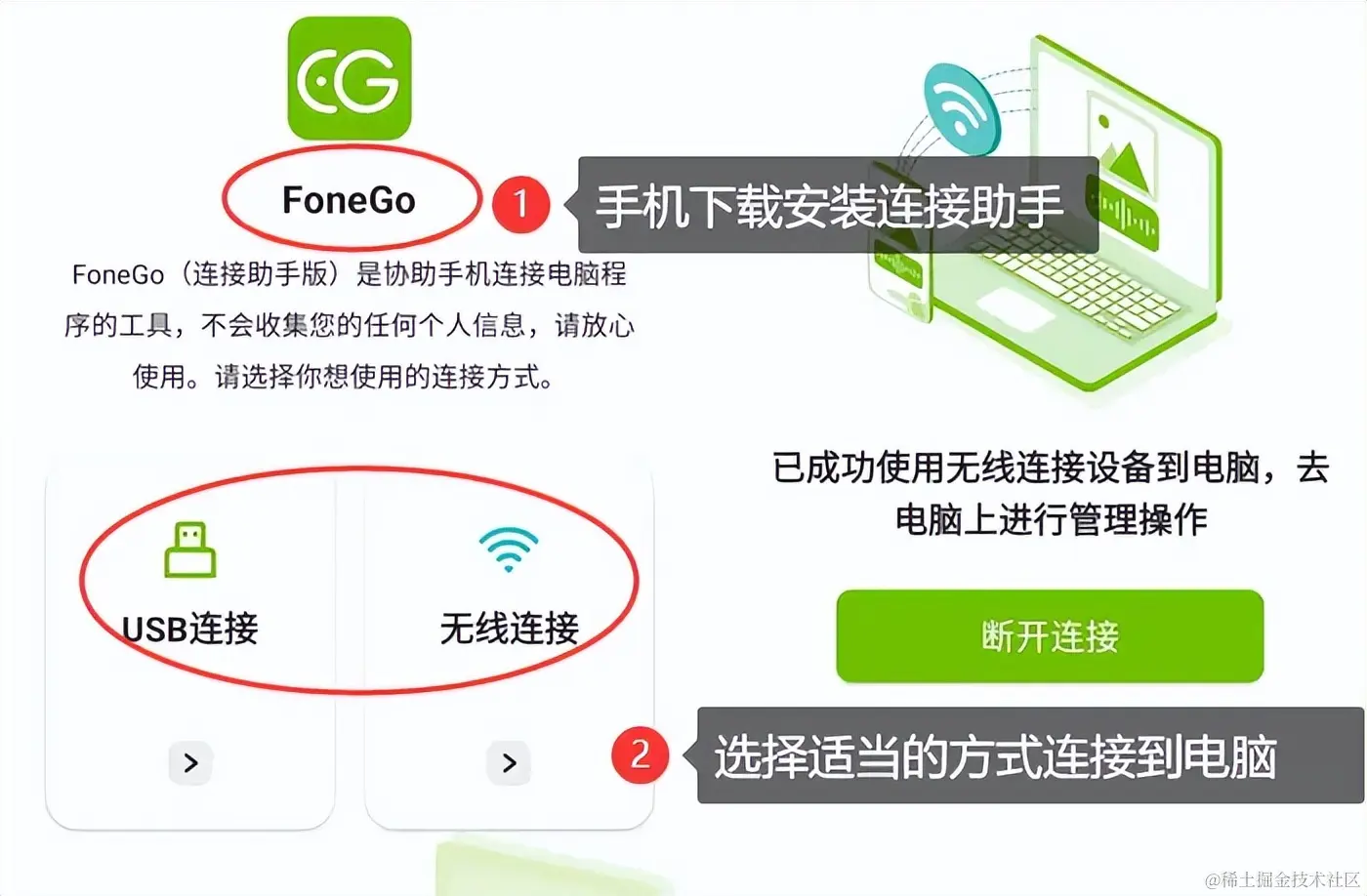 步骤1:首先确保电脑运行正常,然后从官网下载并安装软件,接下来根据提示,选择适当的方式将手机连接到电脑。