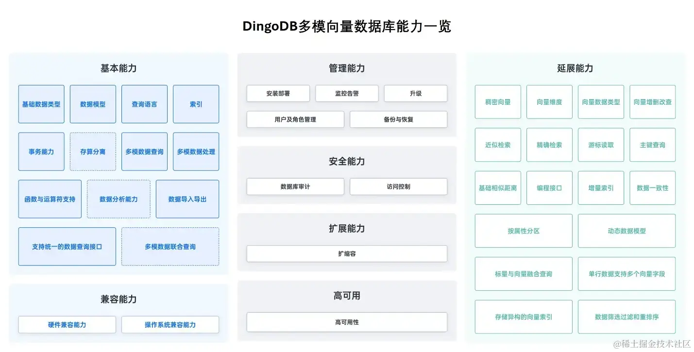 - 大模型记忆体:DingoDB辅助大语言模型生成前的Prompt管理,提供高效并发的搜索答案能力。这在大语言模型时代尤为重要,能够为AI模型提供可靠的数据支持,提升模型生成答案的准确性和效率。