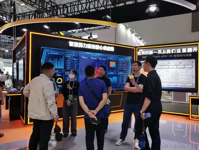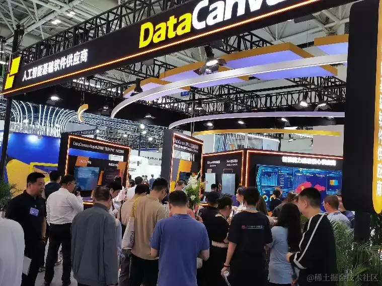 在智算中心展示专区,九章云极DataCanvas公司的算力调度全景大屏吸引了众多目光,形象展现了九章云极DataCanvas作为核心参建单位,参与建设的全国智算中心算力调度的实时动态。屏幕上,实时更新的AI任务执行情况、算力调度的精准状态以及算力消费数据,每一个跃动的数字都象征着算力中心与调度网络的蓬勃活力和高效性能,共同绘制出一幅算力高效运转的宏伟图景。在人工智能平台专区,观众仿佛置身于AI的奇妙世界,可以沉浸式体验“大+小”模型全生命周期的训练过程,深入感受AI技术的魅力和潜力。凭借在人工智能和智算领域的深厚技术积累和极具科技感的AI呈现效果,九章云极DataCanvas公司为观众带来沉浸式的AI观展盛宴,现场人潮涌动,气氛热烈激昂。