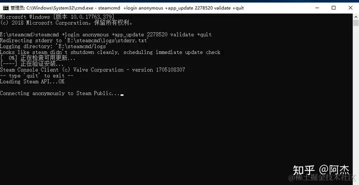 解压steamcmd并启动程序下载所需文件