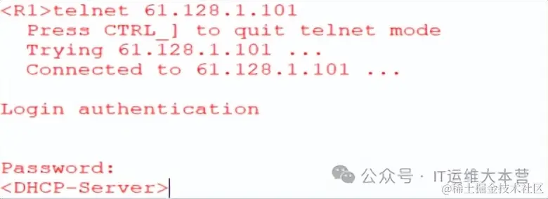此时R2 telnet61.128.1.101其实是跳转到DHCP-Server上:
