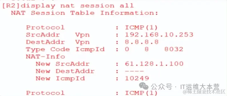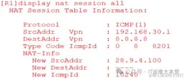 此时PC1,PC2和DHCP-Server都能ping通8.8.8.8,且在R1上能看到地址转换: