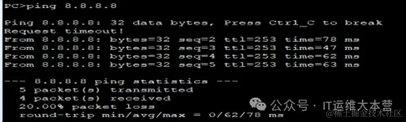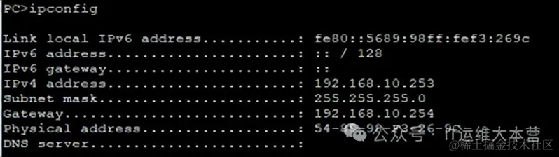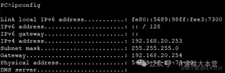 测试PC能否获取地址: