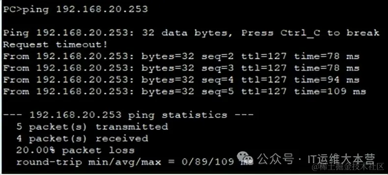 此时PC1无法ping通 DHCP-Server