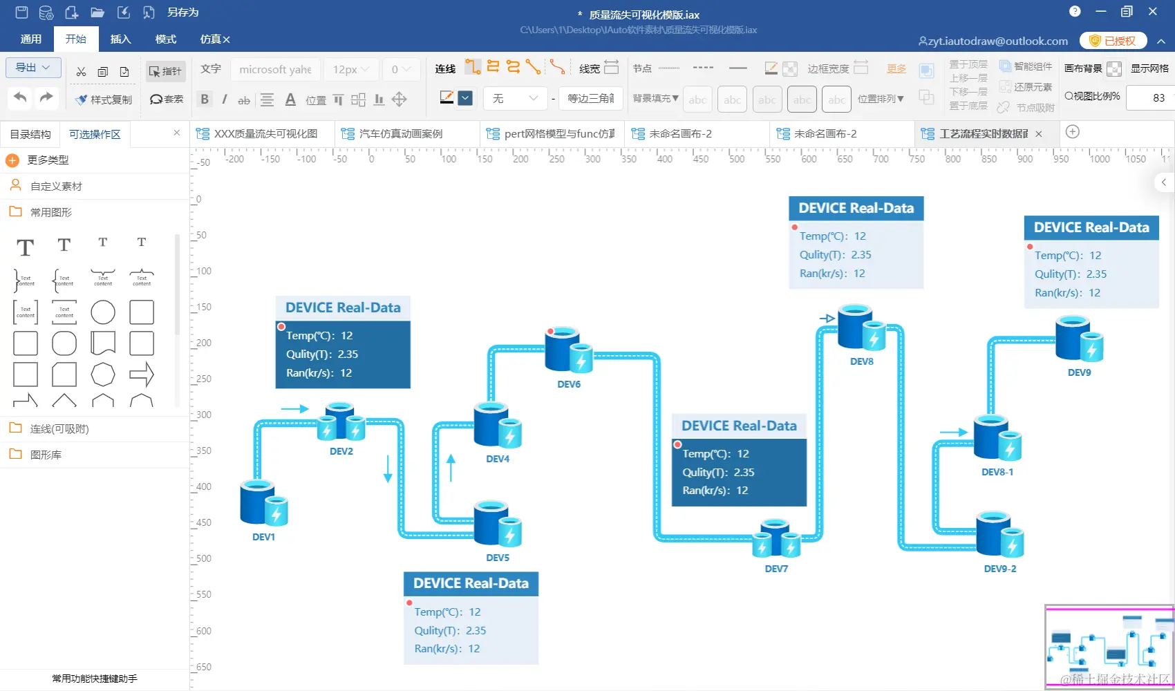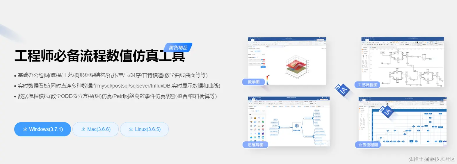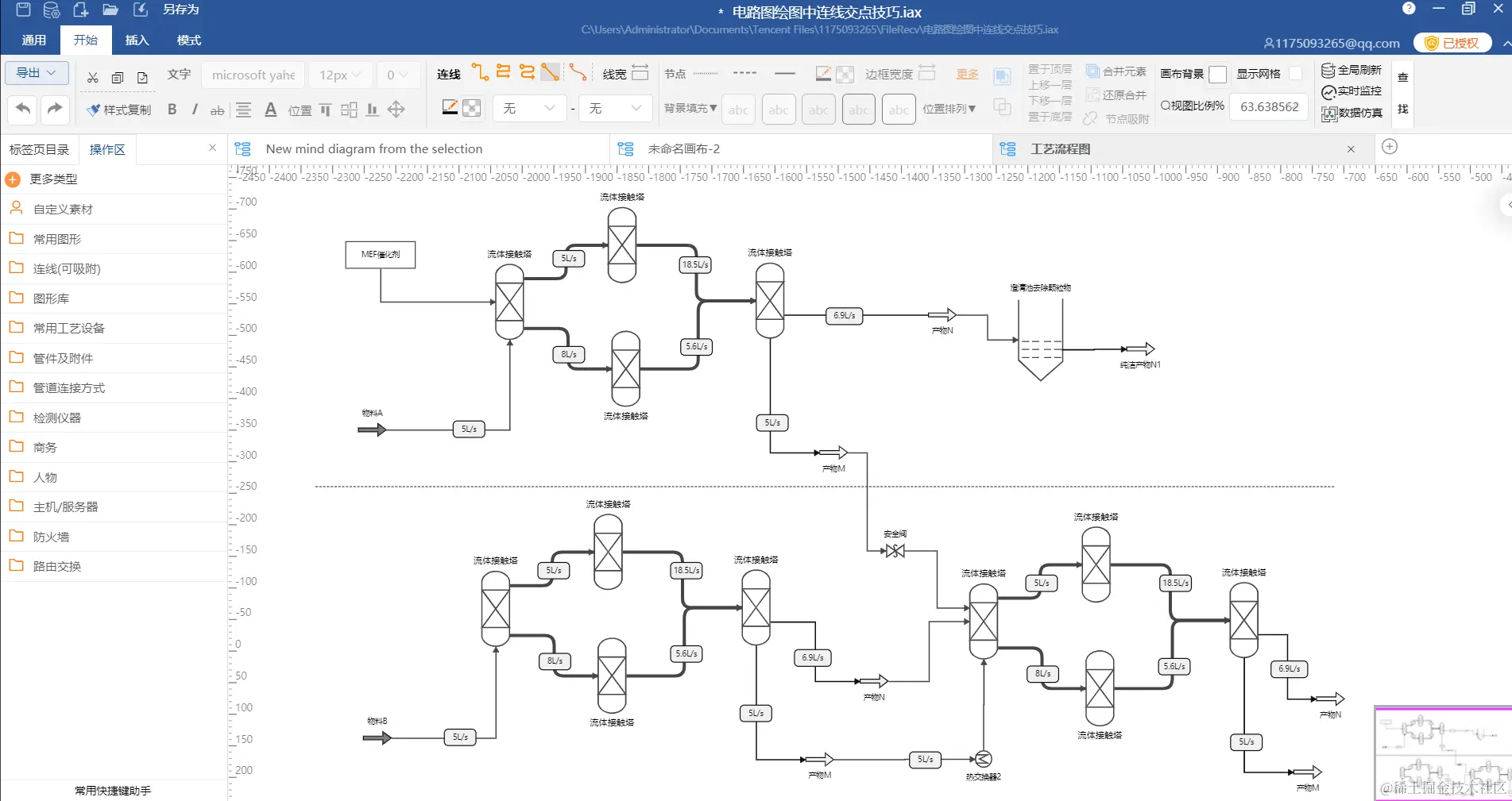 在我们工作、生活、生产中经常会遇到需要绘制各类泳道流程图、思维导图、项目进度管理图、原型线框图、时序图、工艺流程图、关系图、拓扑图、组织结构、BPMN/UML、数学公式曲线曲面、数学模型仿真与求解、物料平衡流程模型仿真、二三维实时数据曲线、能量物质流衡算、水平衡图、二维原理动画等等,而我们熟知的工具像Visio、Xmind、亿图之类的工具往往使用场景过于单一只局限于基础绘图方面,很难支撑在基于绘图场景下更复杂的场景需求,特别是工艺流程设计过程中经常要进行物质流的衡算及可视化等;