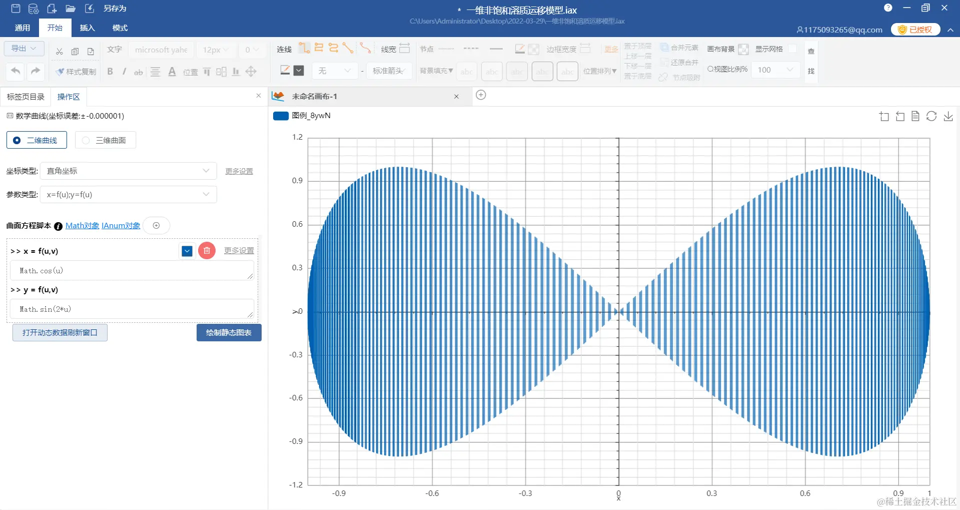 9.数学公式绘图(如下为x=cos(u),y=sin(2u)的参数方程绘图)