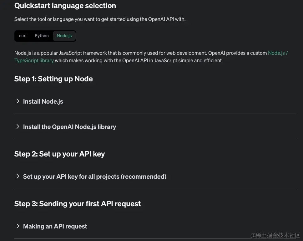 下图是openai_docs关于如何在Node项目中使用的步骤。