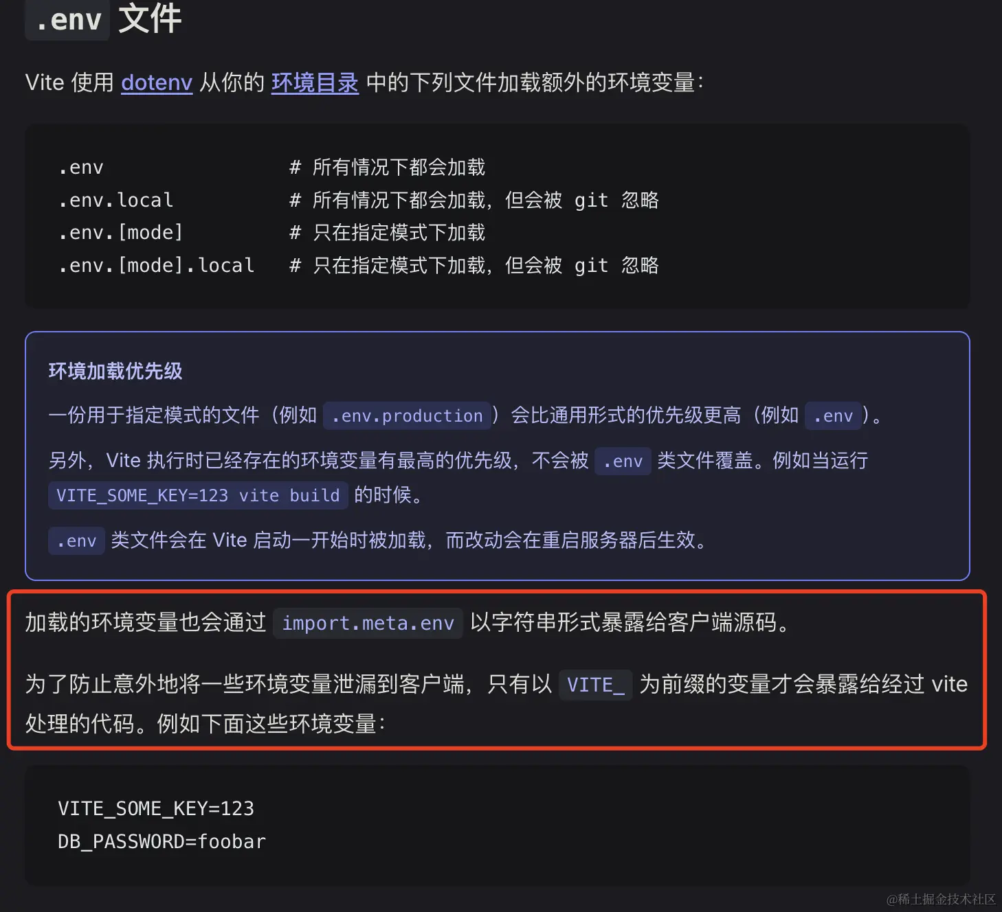 这里还有一点需要说明,在Vite中配置环境变量并且能够在项目中使用(import.mete.env.xxx),我们需要以VITE_开头定义一个变量名。