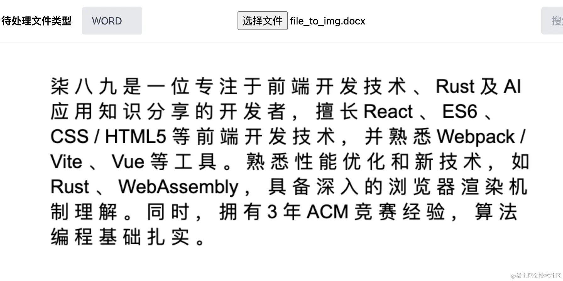 在前几天我们不是写了一篇Rust 赋能前端 -- 写一个 File 转 Img 的功能的文章吗?主要讲了如何用Rust解析文件并将其内容用图片形式展示。