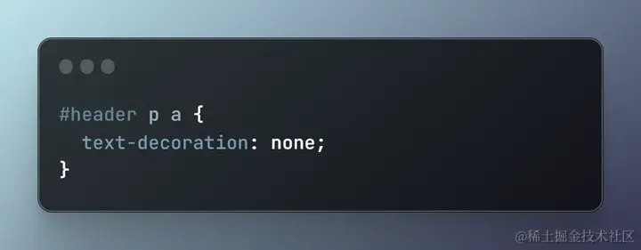 正如你所看到的,这个例子一点都不复杂。这段 CSS 代码移除了标题中所有段落内链接的文本装饰。这不是普通的 CSS 吗?