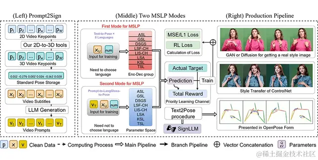 该数据集包含海量来自不同手语体系的视频数据,并经过精心处理和标注,转化为 AI 模型易于学习的格式,为 SignLLM 的训练提供了强大的数据基础。