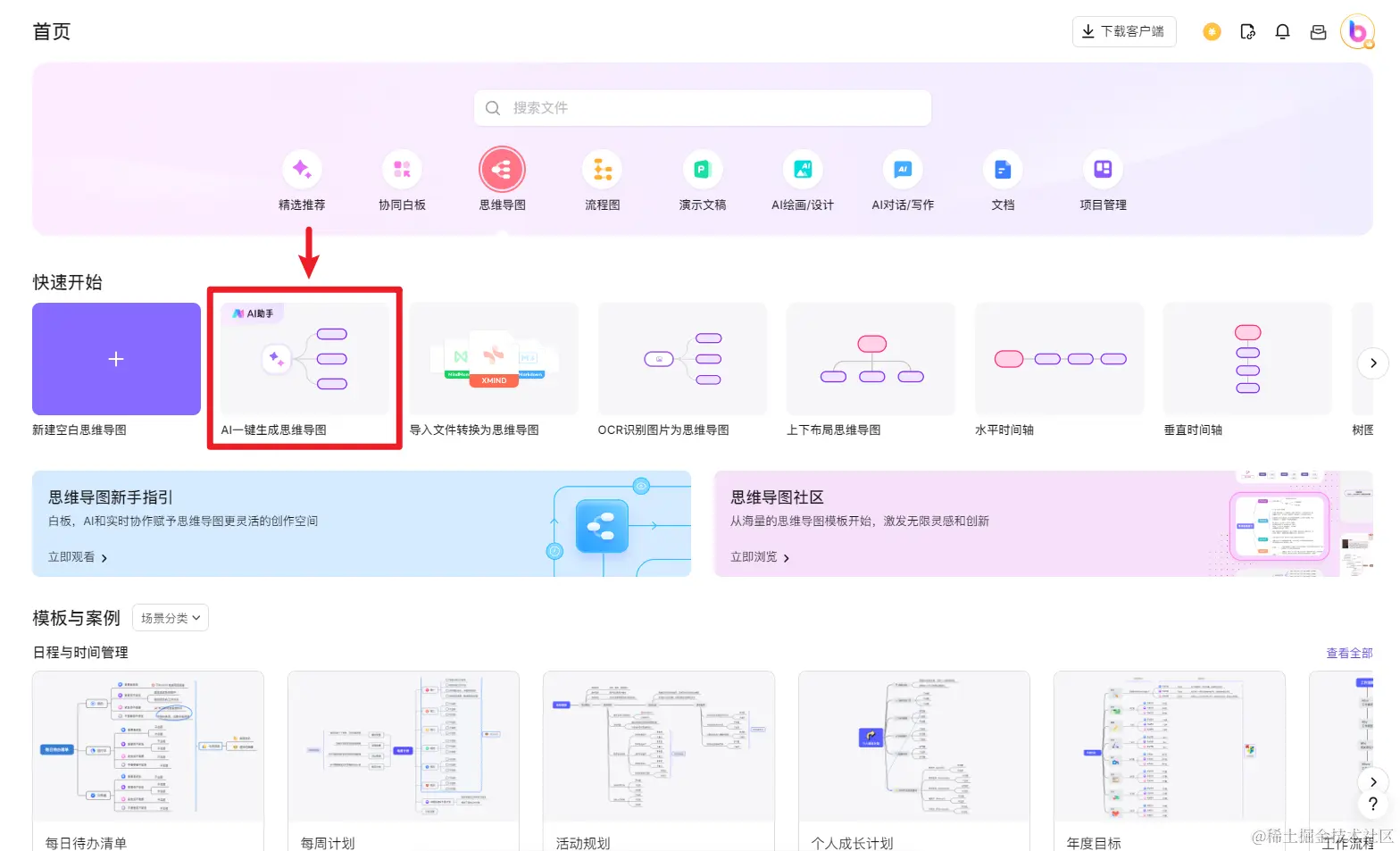 AI 驱动的模板生成:使用人工智能算法快速生成思维导图。