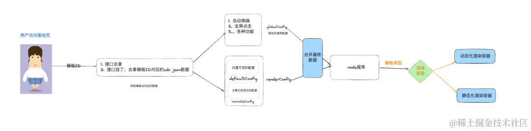- 是为了渲染层对于不同模板类型走不同的渲染模式。比如静态化的广告落地页,不涉及请求接口的。统一走SSG或者ISR的渲染模式。如果是依赖接口请求的落地页,走SSR或者是react 18的流式渲染RSC。