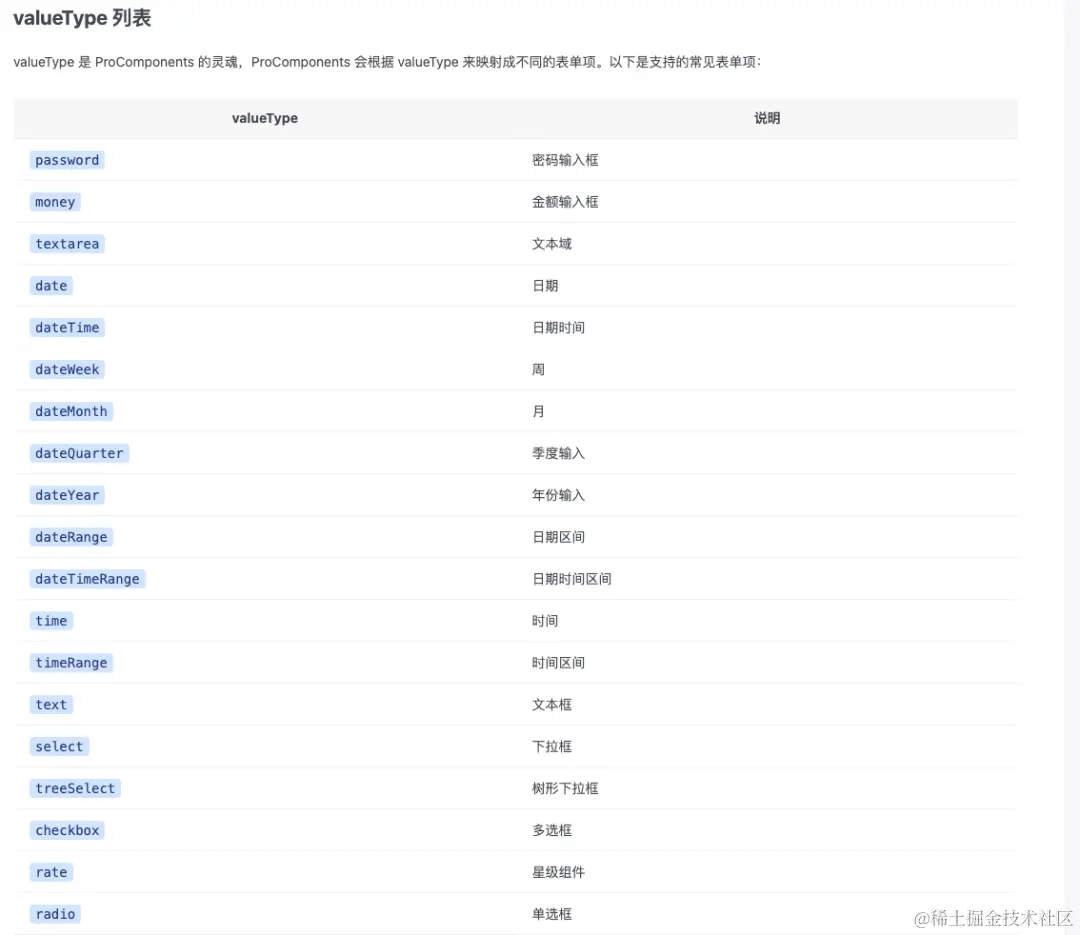 SchemaForm是根据JSON Schema来生成表单的工具。SchemaForm会根据valueType来映射成不同的表单项。