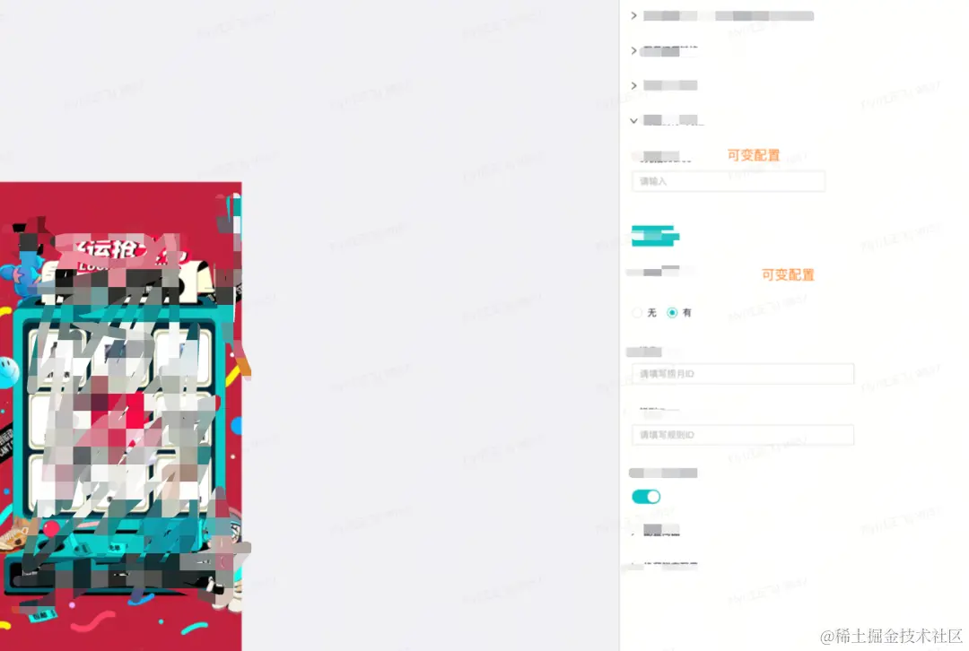 variableConfig: 主要是模板的可变配置,也就是运营经常会配置的。