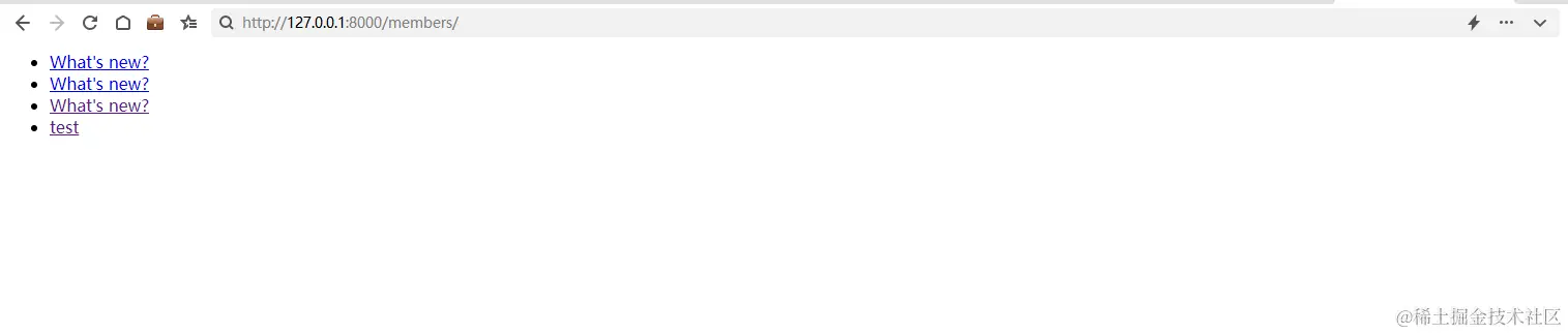 然后访问 http://127.0.0.1:8000/members/ 就可以看到我们向 question 视图数据里面插入的数据被查询出来的。