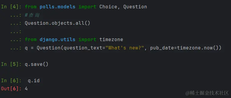 进入交互式 Python 命令行,可以使用 django 丰富的api。