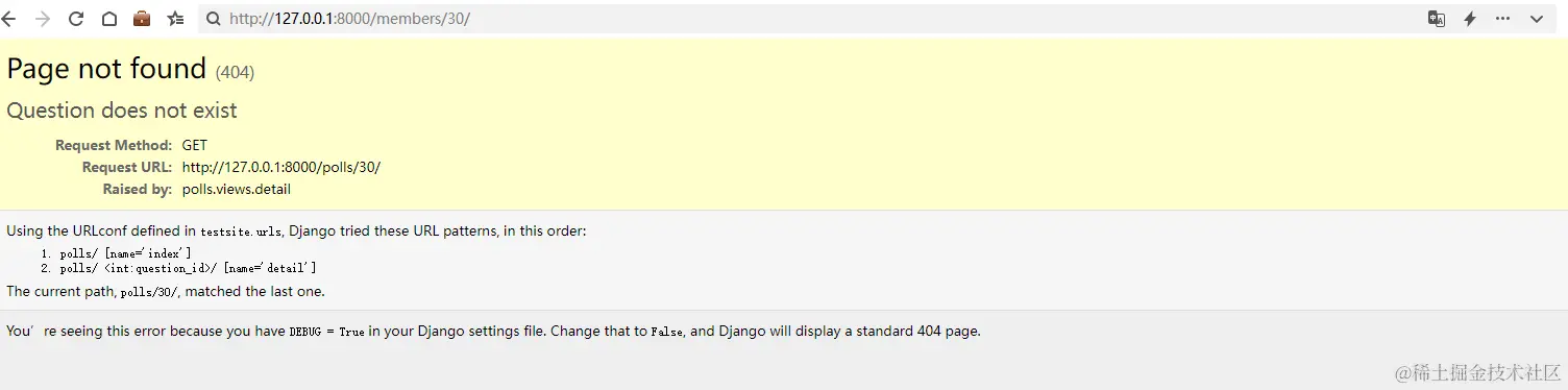 访问我们的地址 http://127.0.0.1:8000/members/2/ 就可以看到出异常效果了,选一个数据库里面没有的数据。