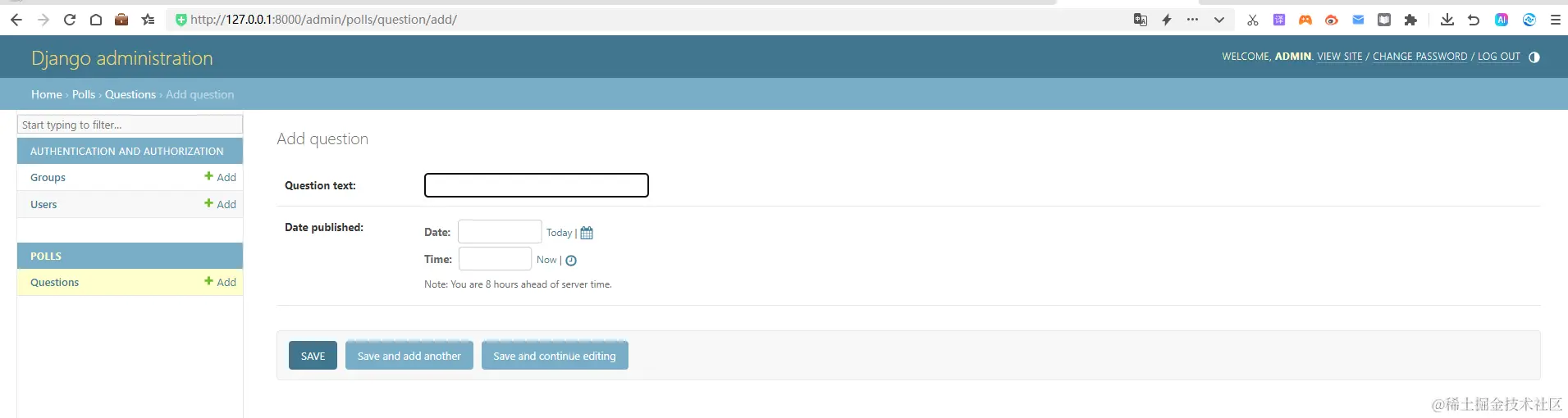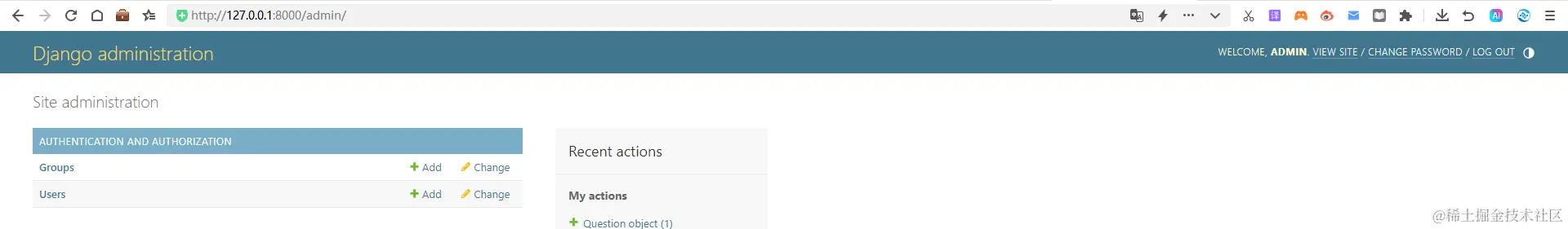 界面上的你group和user。它们是由django.contrib.auth提供的,这是 Django 开发的认证框架。