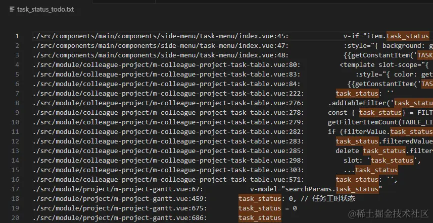 $ grep task_status ./src/* -Rn > task_status_todo.txt