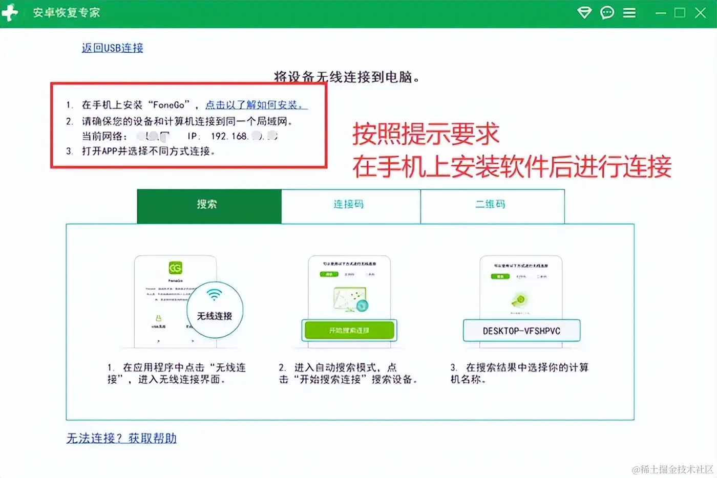 第一步:在电脑上下载软件,确保下载的是安卓手机适配的版本,然后按照提示进行安装和连接手机。