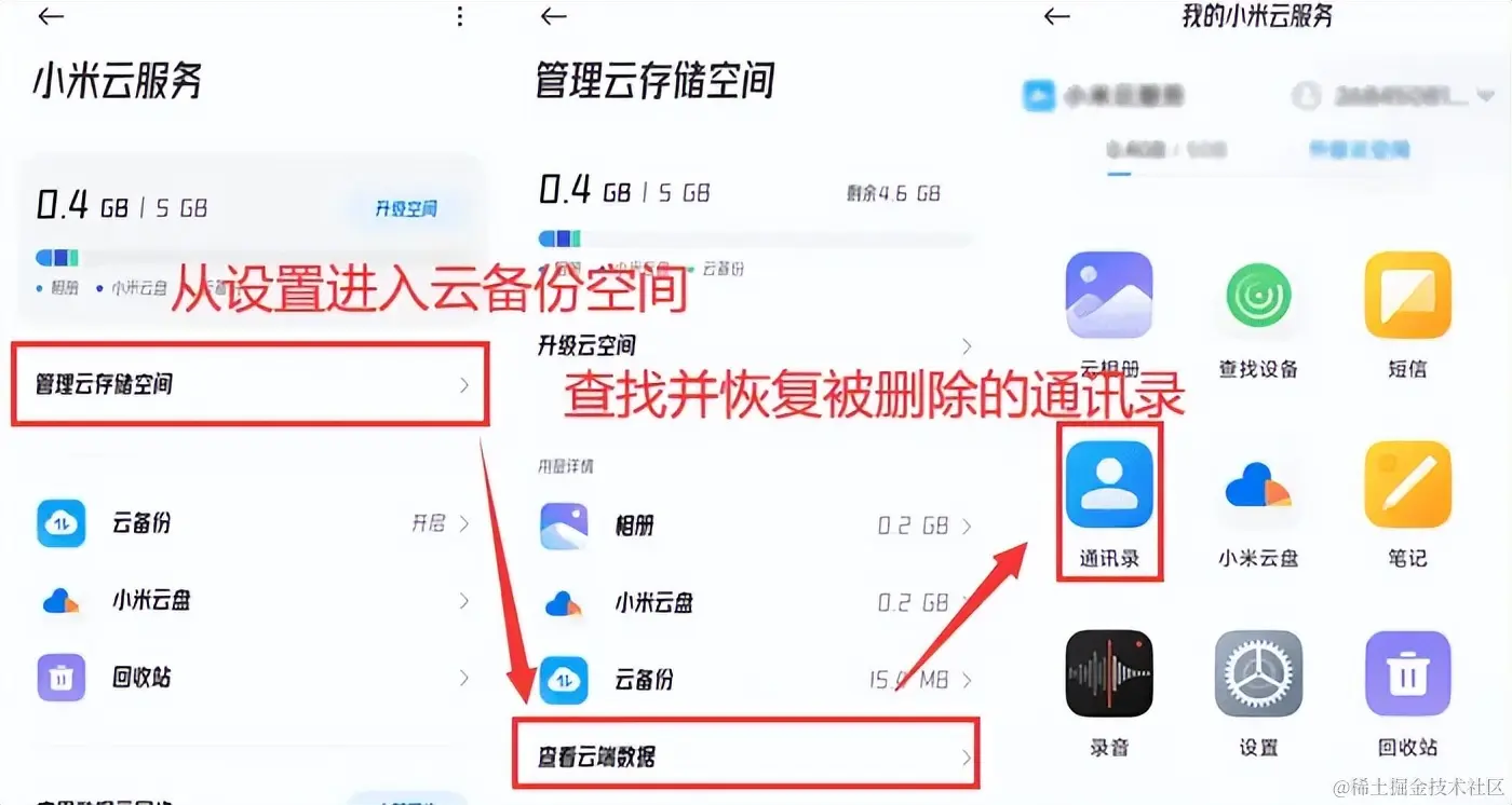 方法二:通过手机云备份恢复联系人