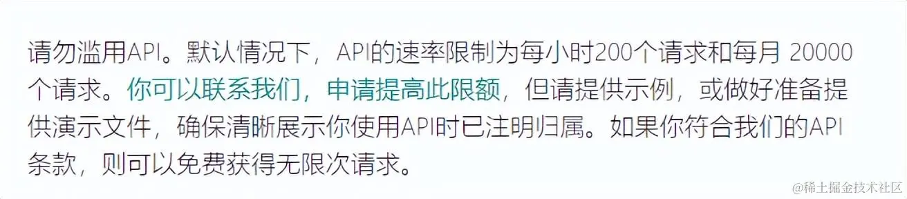 需要申请一个授权就行,但是有些限制,API的速率限制为每小时200个请求和每月 20000个请求。: