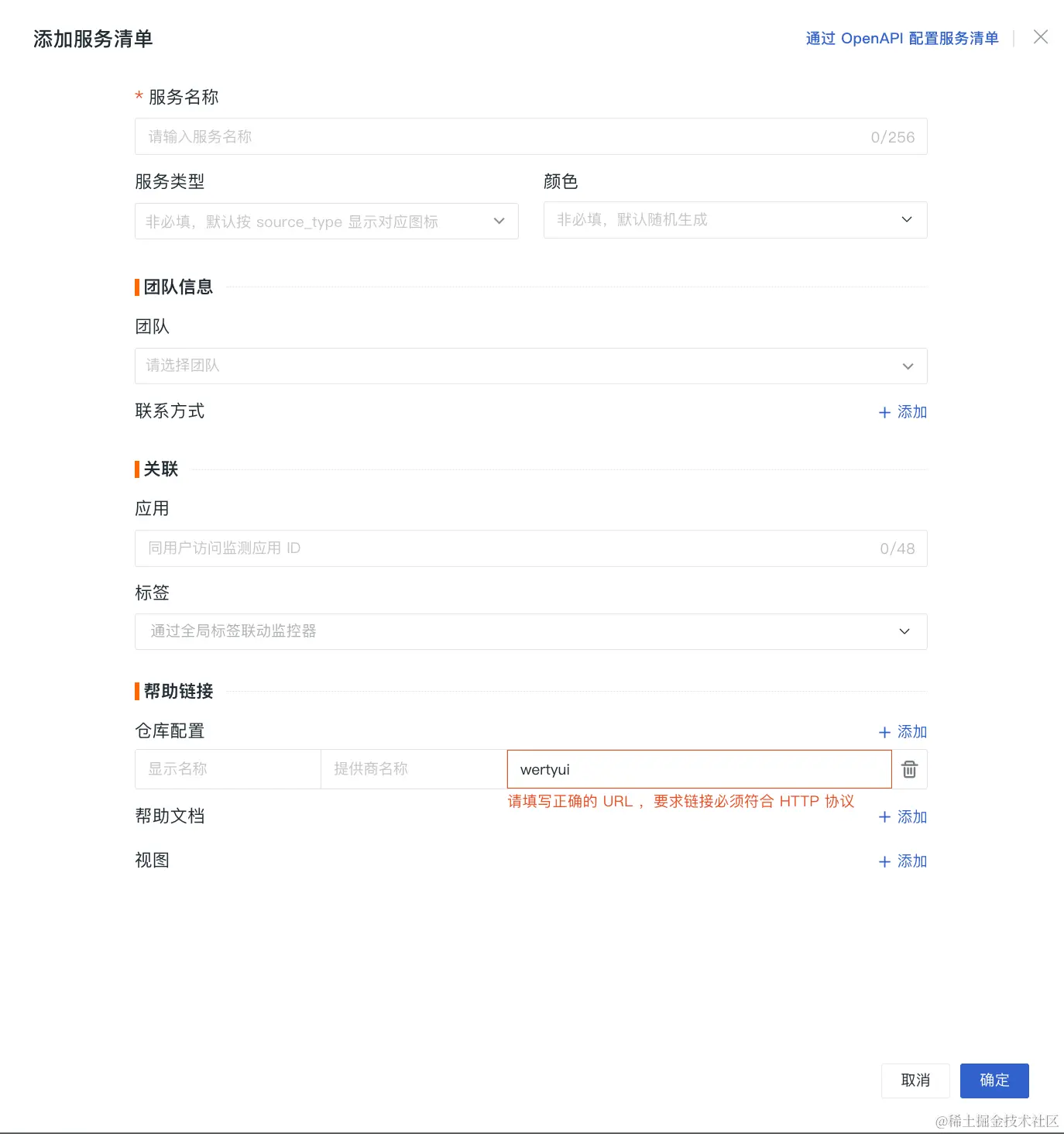 新建/修改服务清单:填写仓库链接、文档链接时增加格式校验。