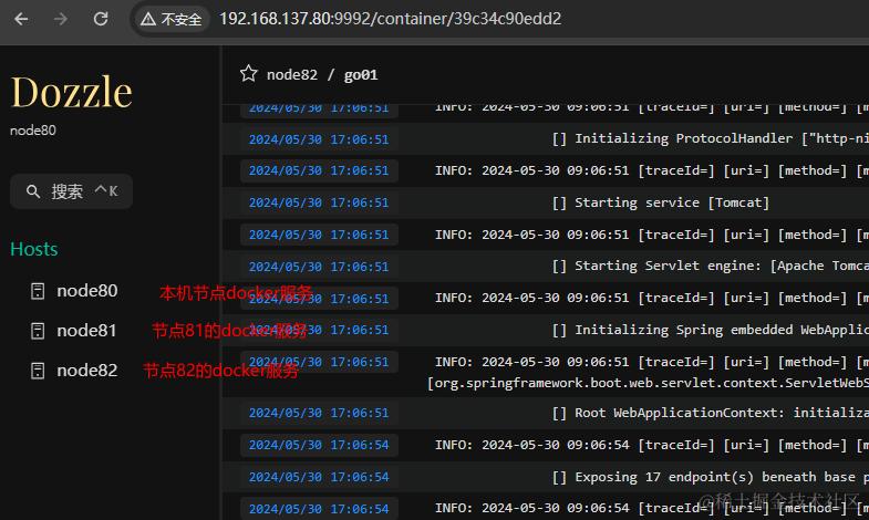80节点启动dozzle服务(挂载证书目录)