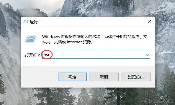 步骤1:按下Windows+R键,打开 “运行” 对话框,输入 “psr” ,点击“确定”,即可打开电脑步骤记录器。