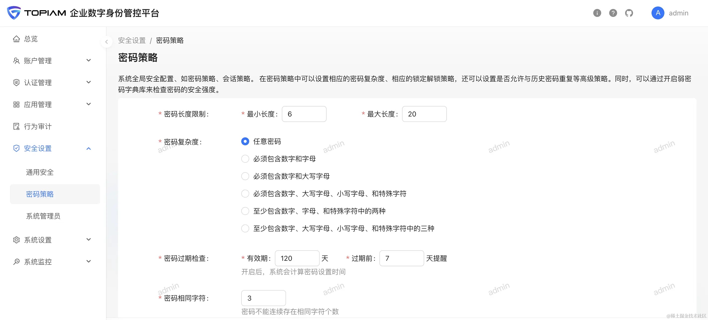 完备的密码策略机制,可以设置相应的密码复杂度、相应的锁定解锁策略,还可以设置是否允许与历史密码重复等高级策略。同时,可以通过开启弱密码字典库来检查密码的安全强度。