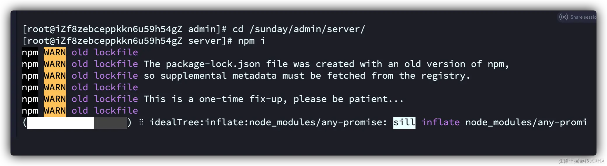 此时依赖安装完成,项目就可以启动了。但是: 要注意在服务器上启动项目不可以和电脑一样。