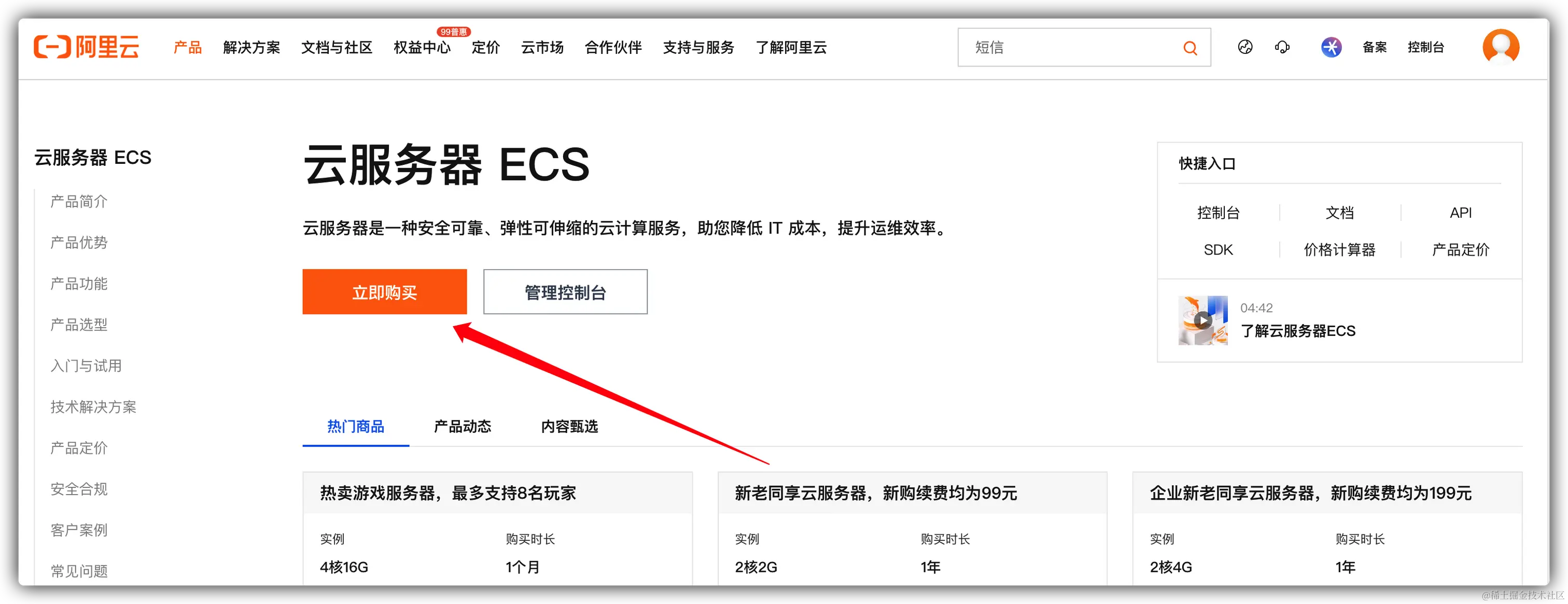 - 在产品这里找到 云服务器ECS: