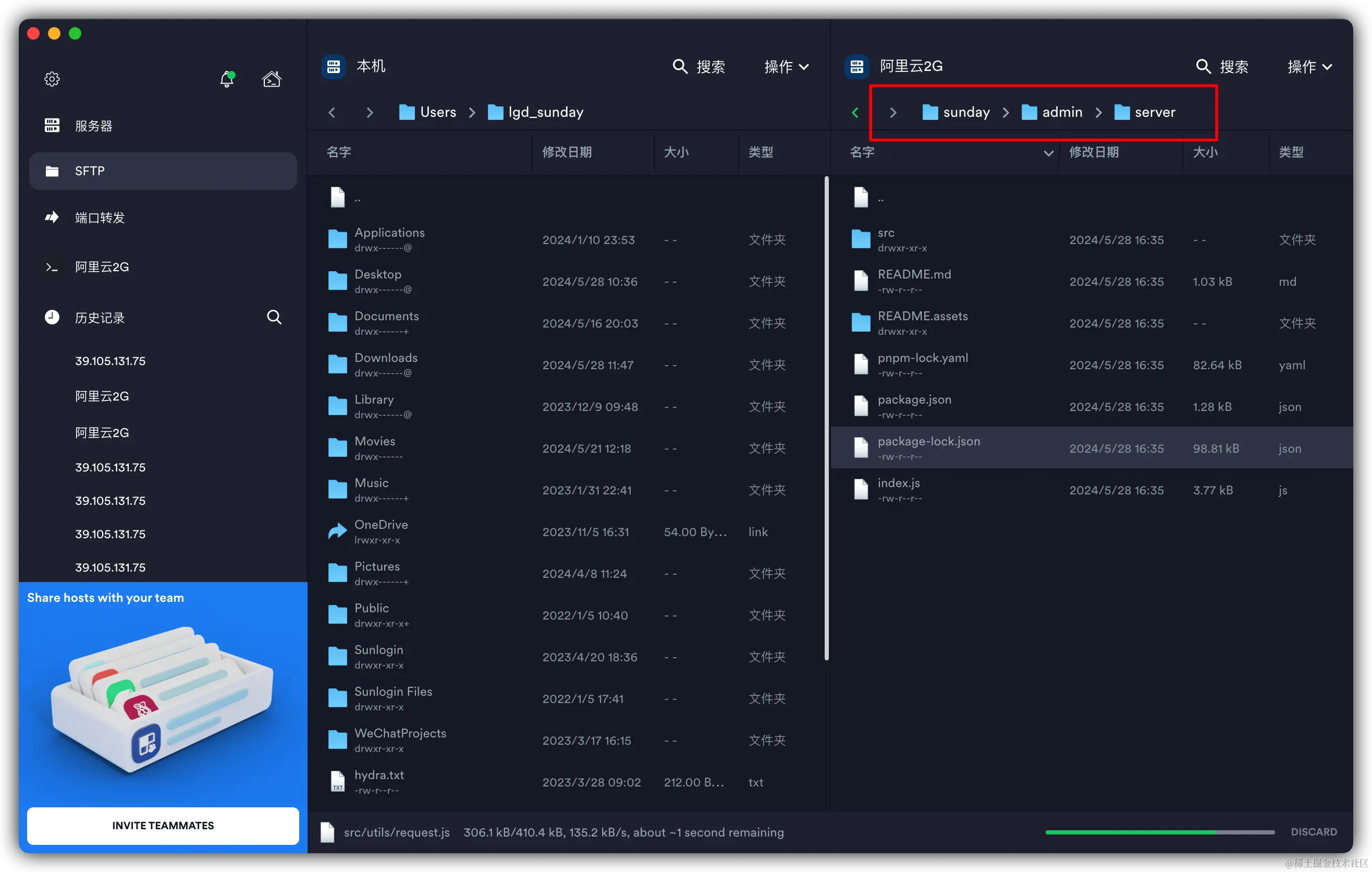 npm i -g xxx通过这样的指令来安装一些插件。这个操作可以直接链接服务器完成 - 文件传输:因为个人项目部署,所以没有必要搞什么复杂的自动化流程。最简单的方式就是把打包之后的项目直接传到服务器上。如果通过指令上传未免有点复杂了。所以说,如果有个工具可以让你直接 拖拽上传 是不是就方便很多了。那么这种拖拽工具就叫做