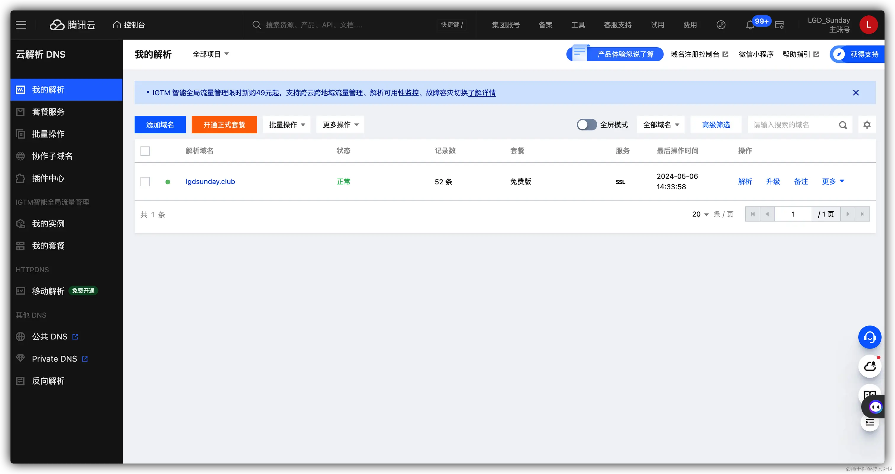 www.lgdsunday.club并不是购买的域名,而是在lgdsunday.club的基础上配置的域名。
