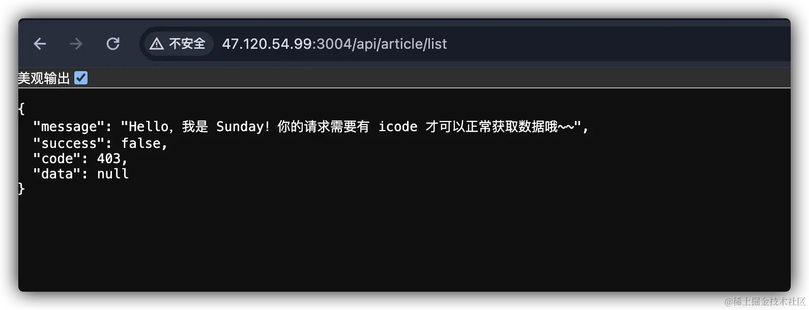 配置完成之后,访问即可得到如下响应: