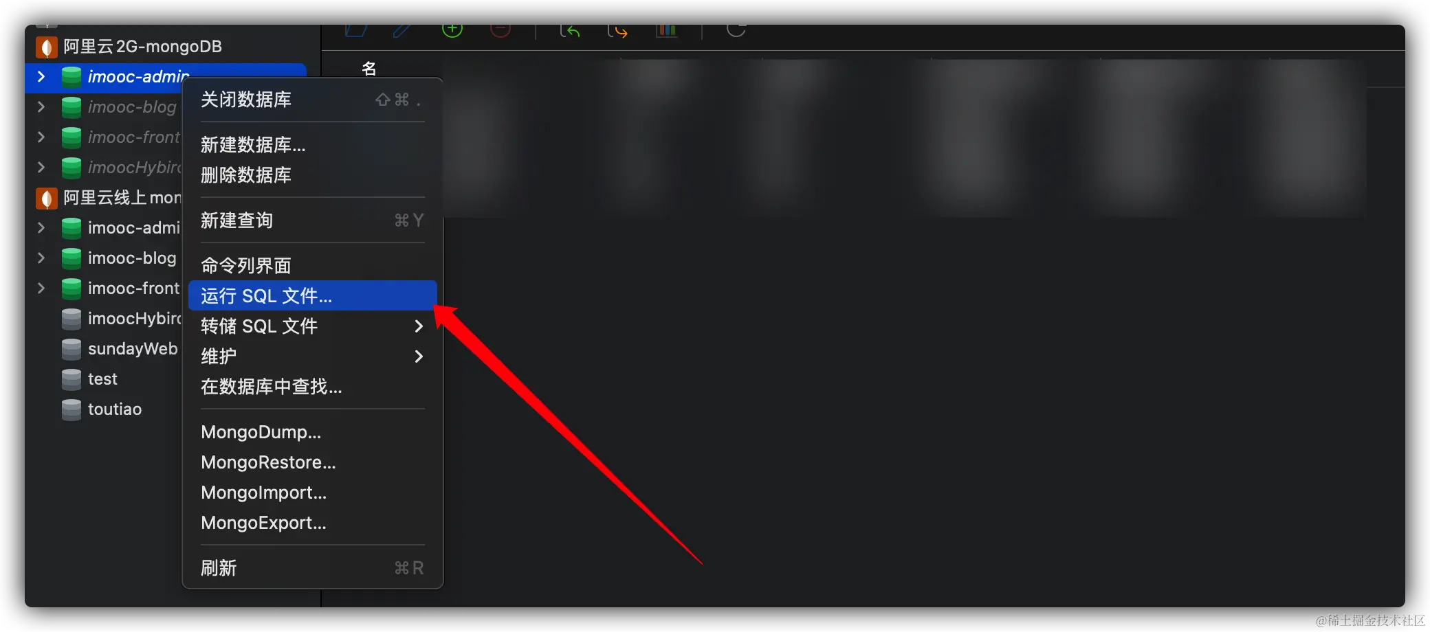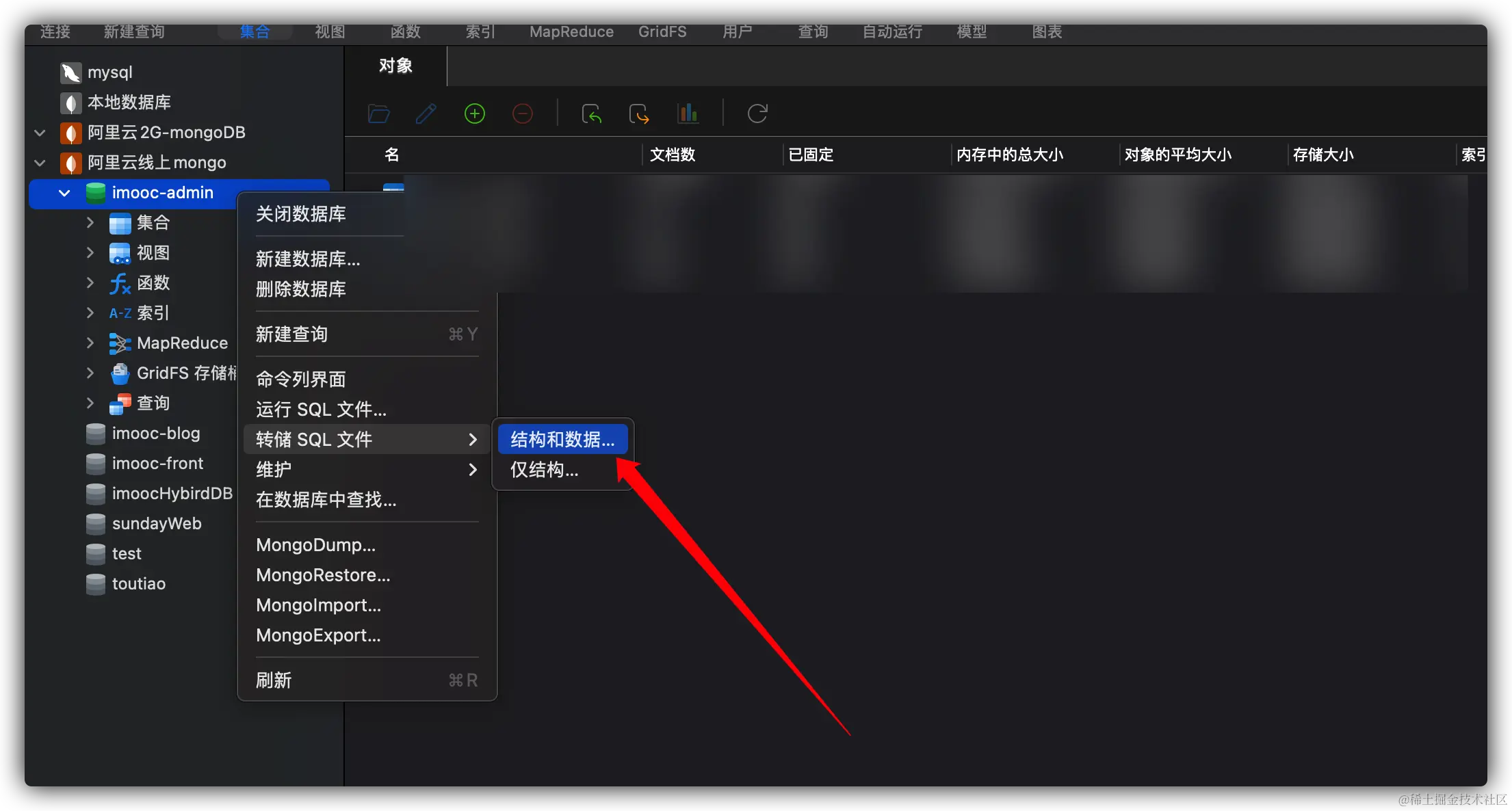 选中指定数据库,导出之前数据