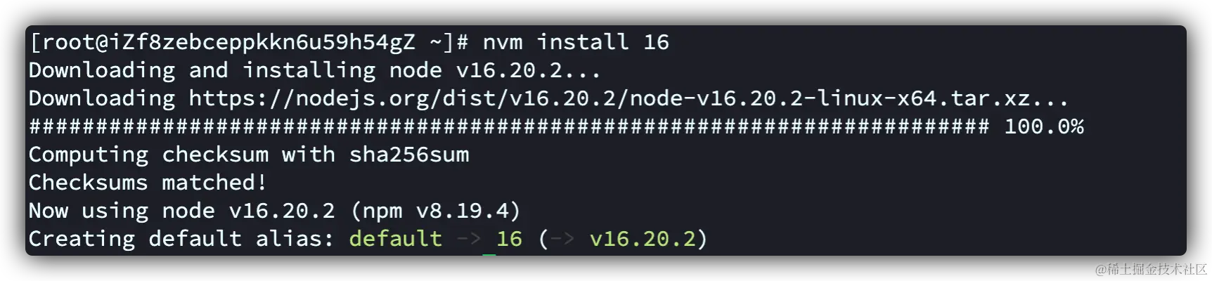 nvm之后,就可以直接安装指定的 node 版本了。比如:我这了安装 16 的版本: