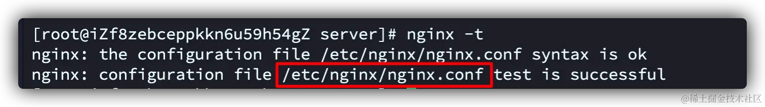 nginx -t命令获取到nginx的配置文件位置 -