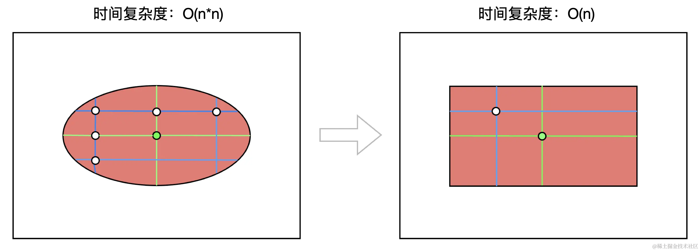 第二种方法大大减少了循环次数,兼顾性能的同时支持检测多个形状,时间复杂度O(n )
