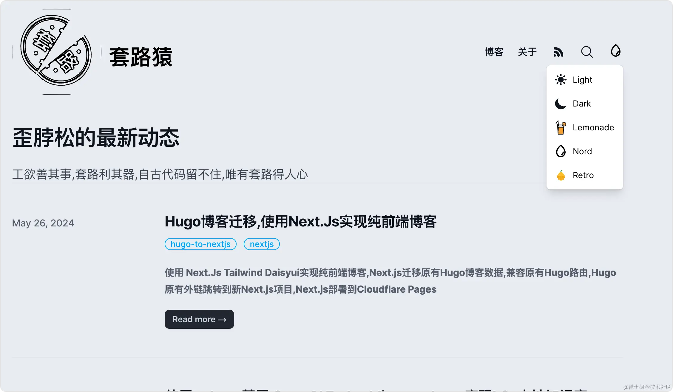 具体的建站过程 请看 Hugo博客迁移,使用Next.Js实现纯前端博客