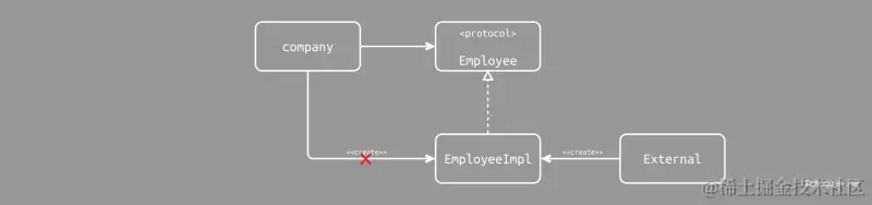 的控制权从内部转交至外部,由外部来控制对象的初始化、属性赋值等操作。其期望的类图如下所示,目标是移除 Company