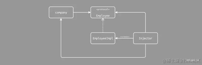 依赖注入的基本思想是:通过一个注入器(Injector),由它来控制 Employee