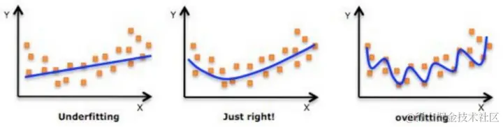 过拟合:模型过度拟合训练数据,如下图右3。这通常导致模型在训练数据上表现非常好,但在测试数据上表现很差