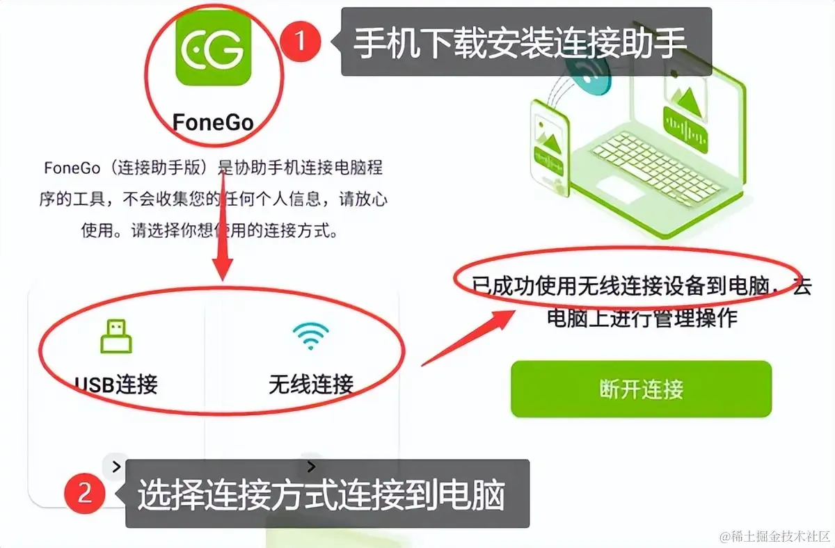 第一步:在电脑上下载安装,然后按照说明进行操作,使用手机下载连接助手,然后选择适当的方式将手机连接到电脑。