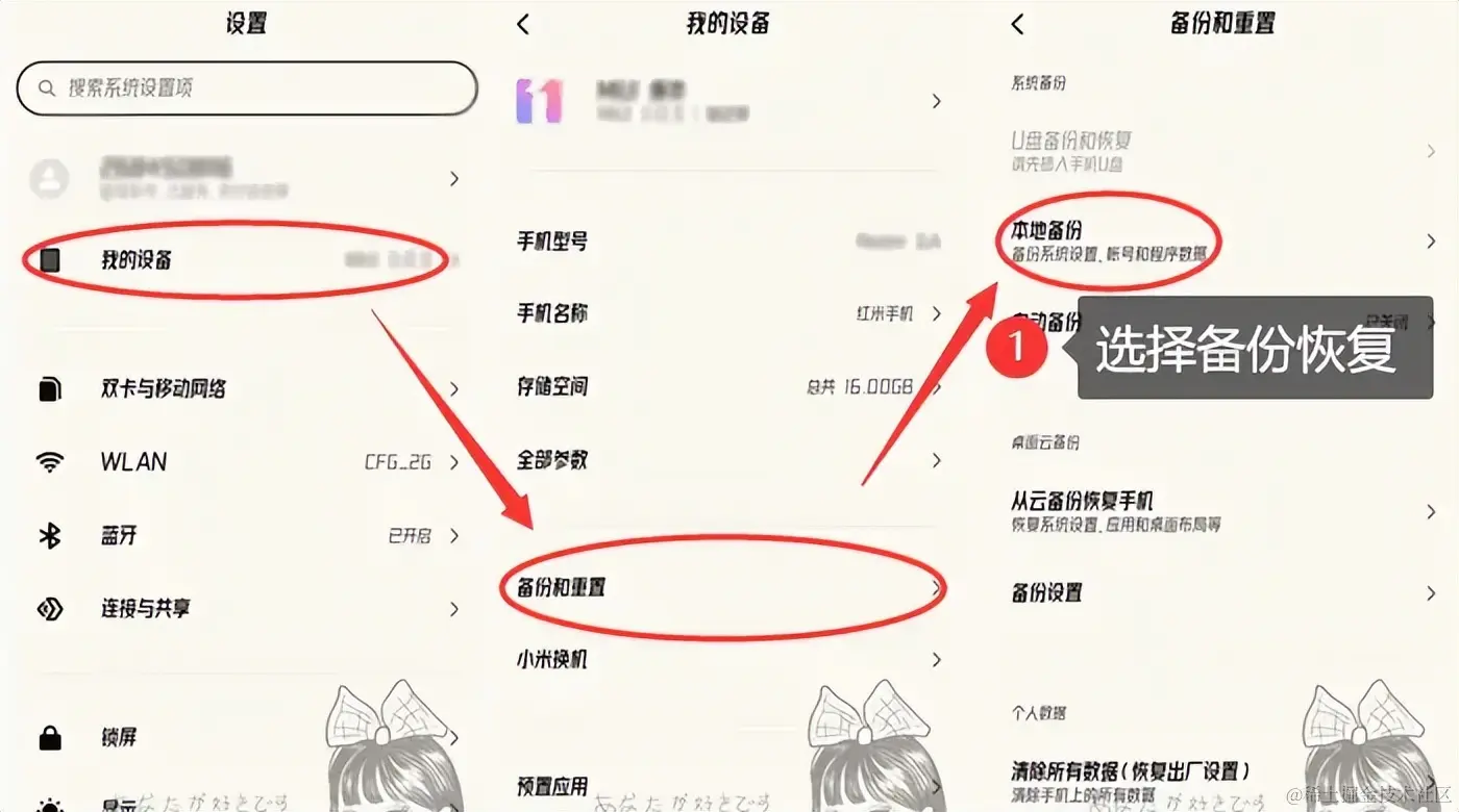 本地备份是指将数据备份到本地硬盘或外部存储设备中。使用手机本地备份是数据备份与还原的最简单操作,而且恢复备份数据相对简单,只需要备份文件复制到相应的位置即可。但如果备份文件被损坏或无法正常恢复,可以考虑使用专业的程序进行恢复。各品牌手机的流程不一,下面简单介绍一下小米手机的操作步骤: