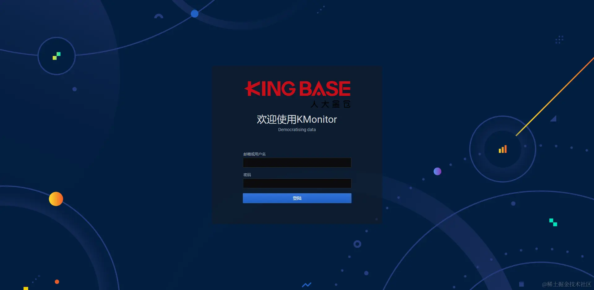 当前示例集群 kmonitor 登录页面面板展示: