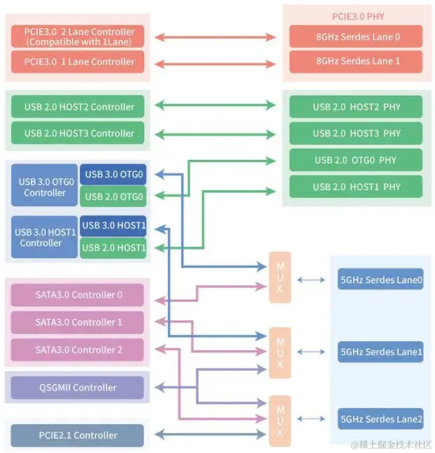FET3568/3568J-C核心板配备3路PCIe接口,最高支持PCIe 3.0;4路独立USB接口,最高支持USB 3.0;具备3路SATA 3.0控制器;内置2个GMAC,支持RGMII/SGMII/QSGMII(2MAC)接口,可实现2路千兆以太网。